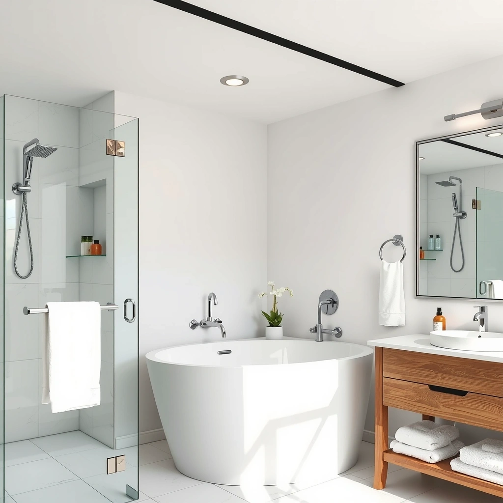 Luxury bathroom deep cleaning featuring tile grout restoration, glass shower door polishing, and fixture sanitization.