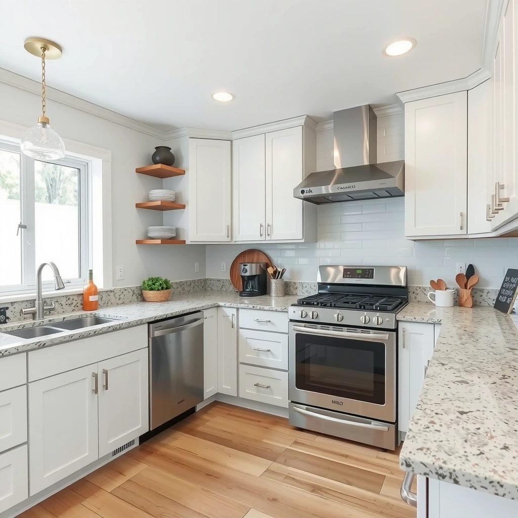 Complete kitchen renovation cleanup including deep degreasing of stainless steel appliances and organization of pantry items.